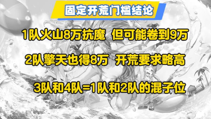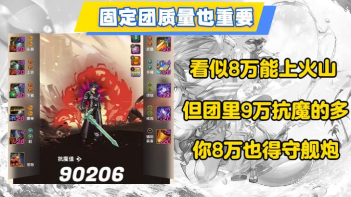另外大家还得明白一个道理,8万抗魔虽然能当火山C,但开荒还得看固定团的质量,要是人均增幅8以上的氪佬团,你8万抗魔都是守舰炮的份。