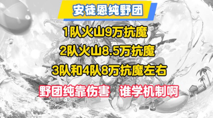 比如一队火山,没有9万抗魔!谁敢放你,除非团长自己去当C,因此2队也得奔着8.5万去了!至于3队和4队,9.24更新后起码也是8万抗魔,因为野团就是拿高伤害提高容错率,愿意认真看机制的勇士,能占50%都算多了。