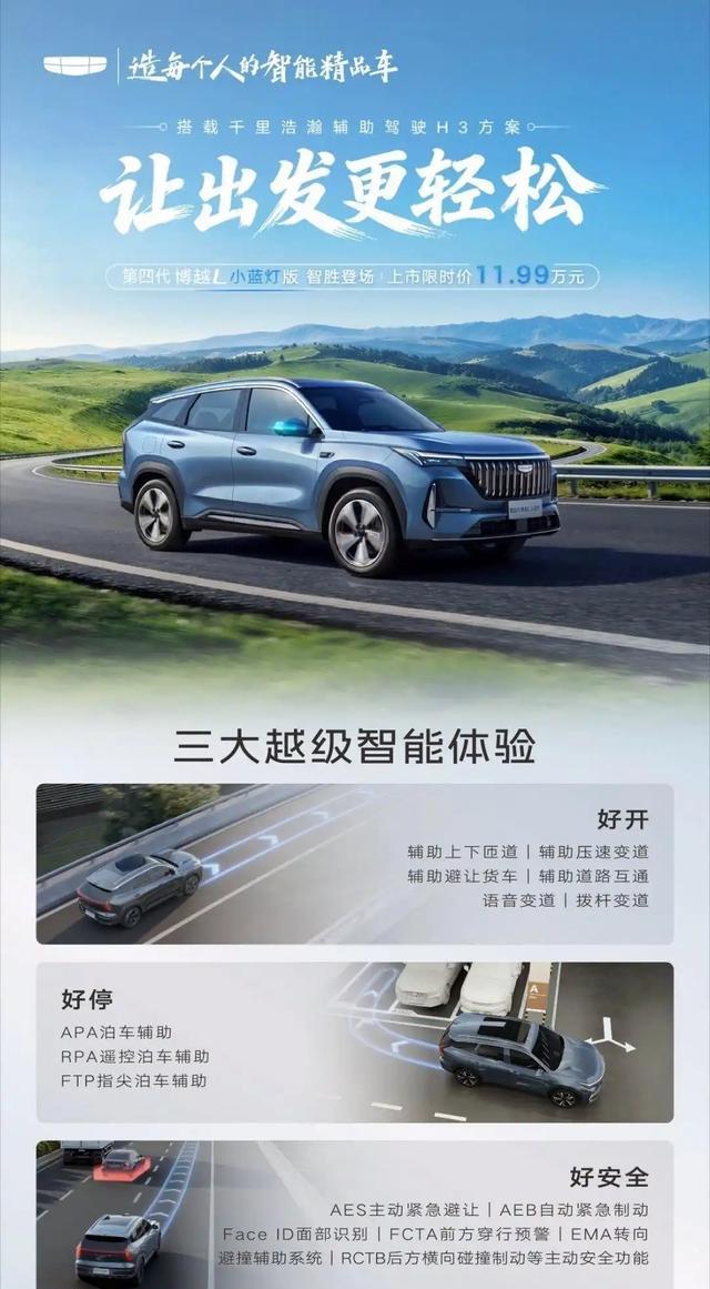 客观聊聊,11.99 万的限时价,能买到带高速领航、全场景泊车的燃油 SUV,在这个级别里确实少见,算是把辅助驾驶门槛拉下来了。博越系列本身口碑不错,老车主基数大,这次加辅助驾驶配置,应该能吸引不少想入手燃油车、又看重智能体验的用户。