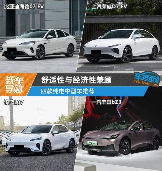 在新能源汽车市场持续升温的背景下,纯电中型车凭借宽敞空间与经济性优势,已成为家庭用户购车清单中的热门选项。本文选取四款国内主流品牌推出的纯电中型车进行对比分析,涵盖比亚迪海豹07 EV、荣威D7 EV、深蓝L07及丰田bZ3,从设计、性能到智能化配置展开全面解读。